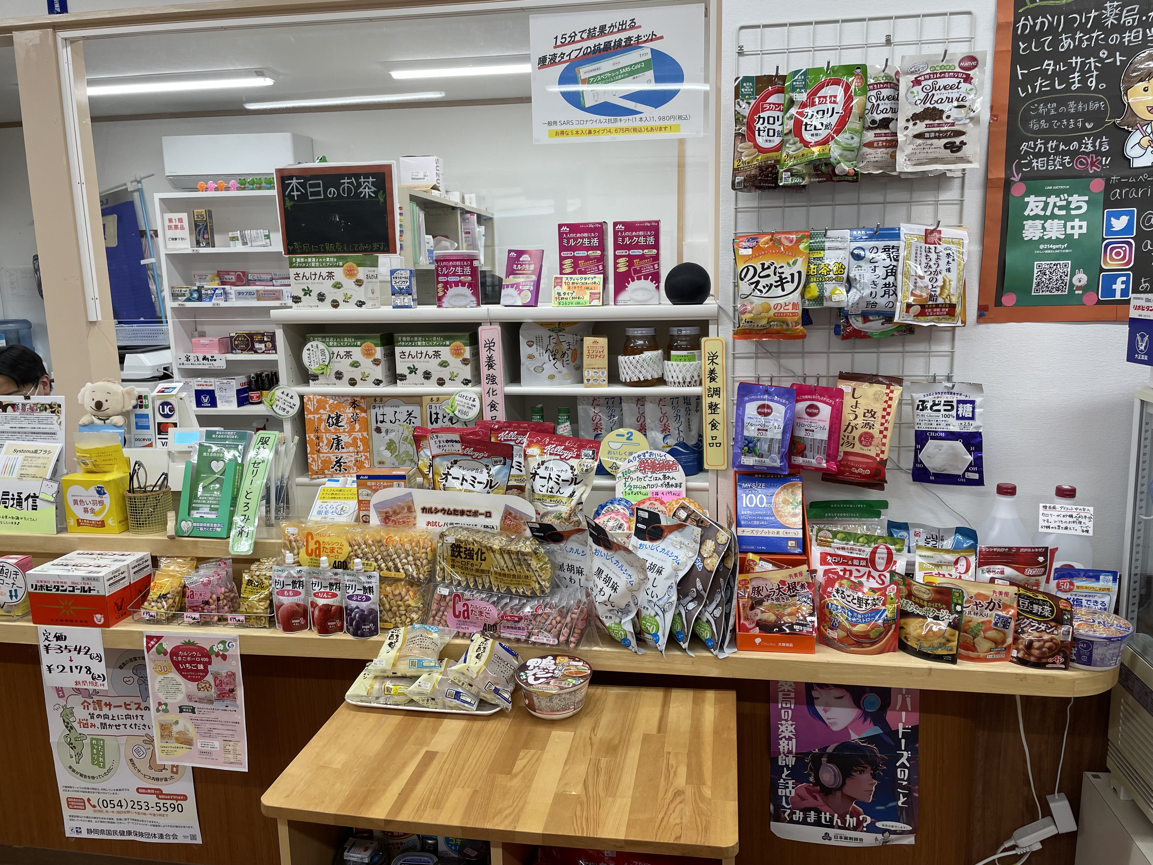市販薬や栄養補助食品、抗原検査キット等を薬剤師の管理のもとで販売しています。